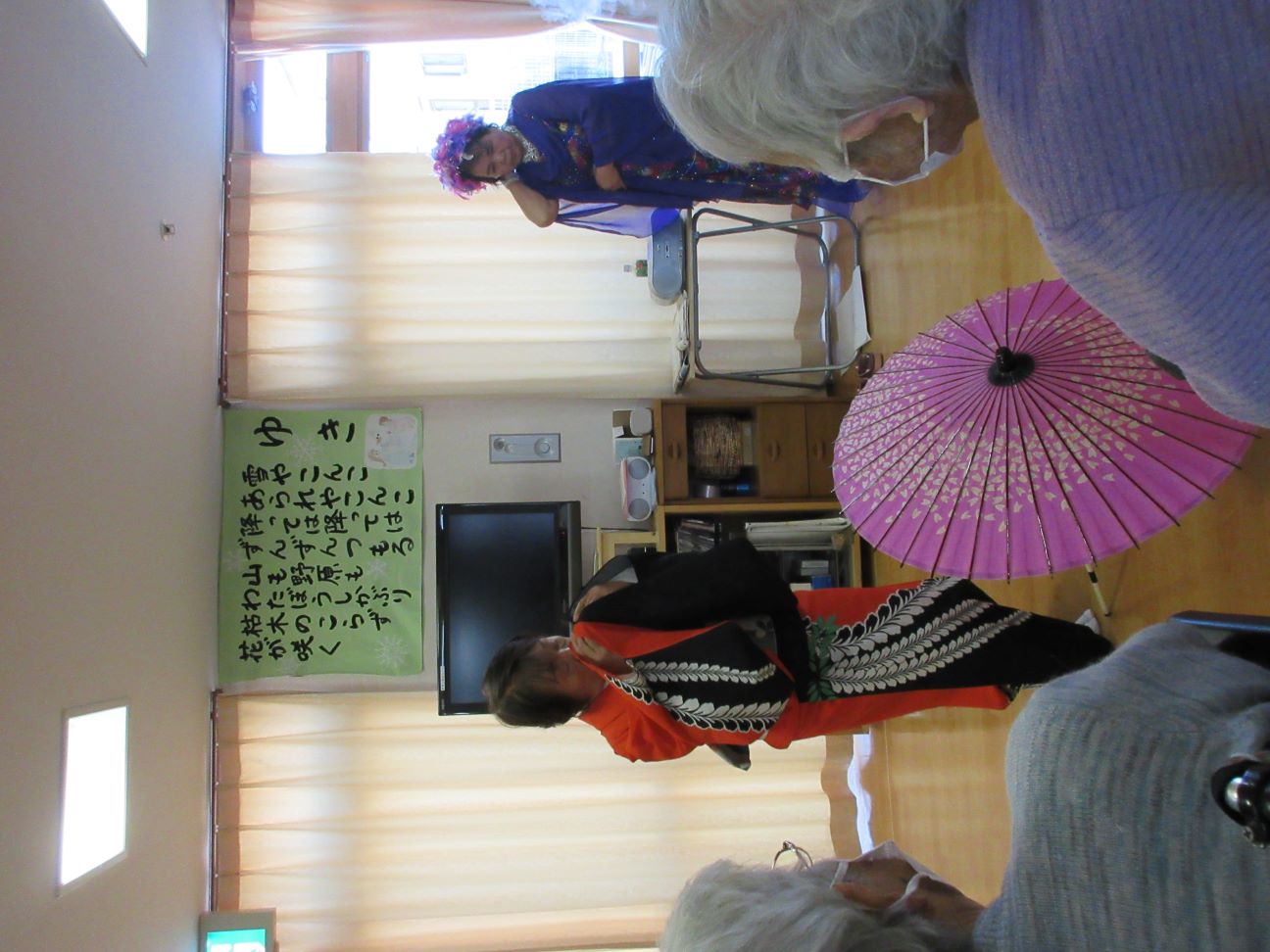 2025/12/29 更新 12月19日 かざぐるまの皆さんが慰問に来て下さいました。歌と踊りと体操と漫談と盛りだくさんな出し物でした。 利用者様も、ひと足早いクリスマス会となり大変喜びながら楽しい時間を過ごしました。 ご見学、ご相談、随時対応しております。土・日曜日も可能ですのでお気軽にお問い合わせください。