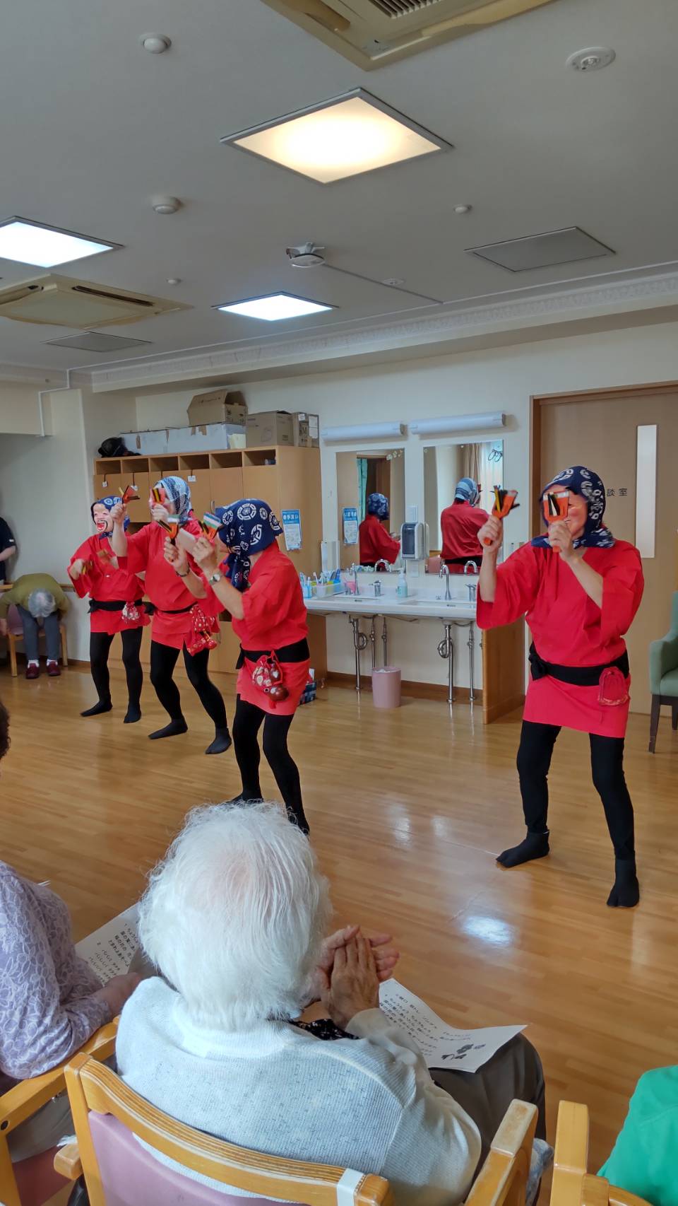 妙技の舞に利用者の皆様は、当初感嘆の声を漏らしていましたが、その独特な動きに徐々に笑いの渦となっていました。