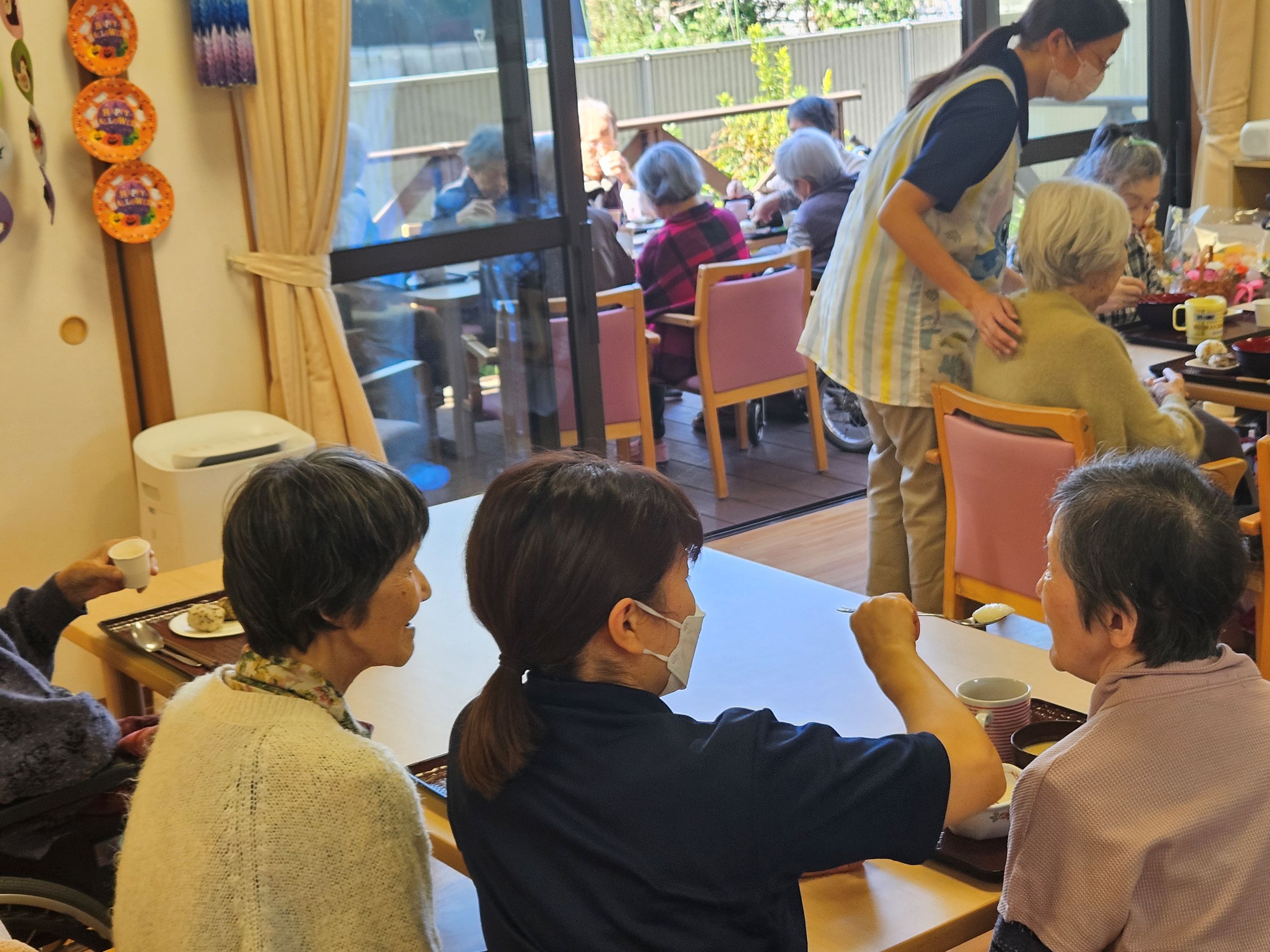 2025/10/17 更新 「気持ちいいねえ」 「美味しい! うまい!!」 今日は、待ちに待った芋煮会 2階の方も1階に降りてきて一緒に食べましょう 大勢で食べる「いも煮」はサイコーですね バルコニーで食べている方も、「温かくなった」と上着を脱いでいます たくさんお代わりしてくださいね♡ 現在 1室 空室がございます。 すぐに入居のご案内可能です。お急ぎでグループホーム ご検討されている方、お気軽にお問合せください。